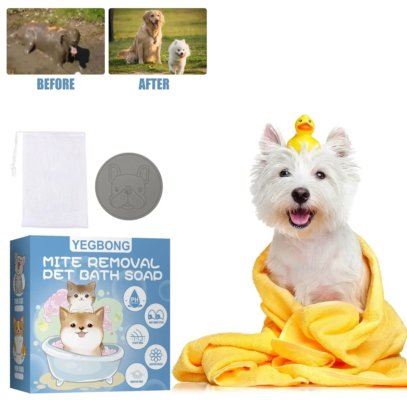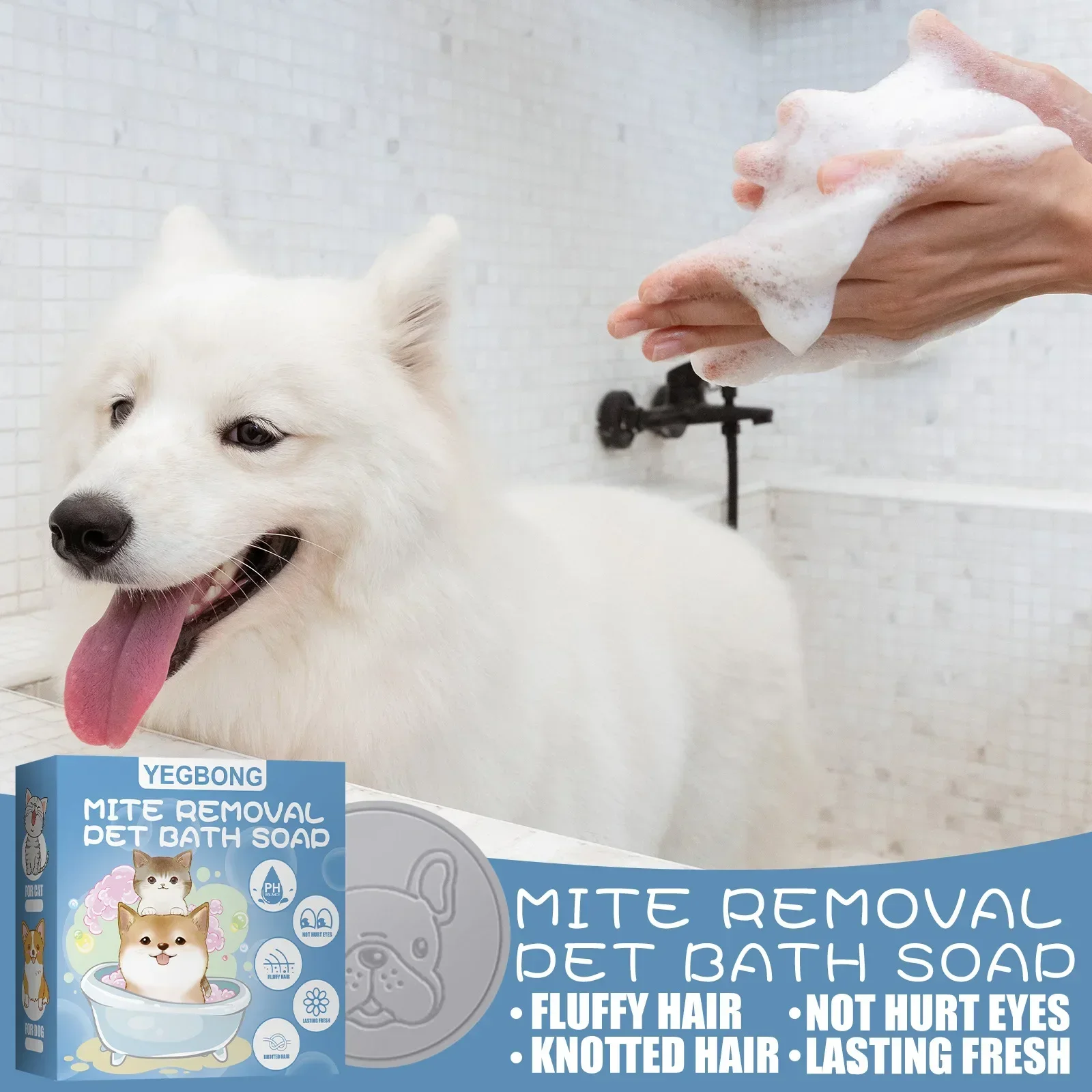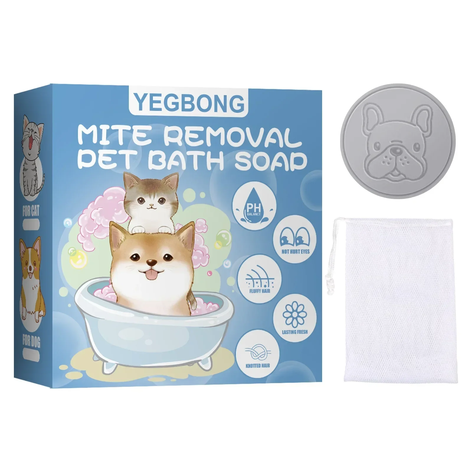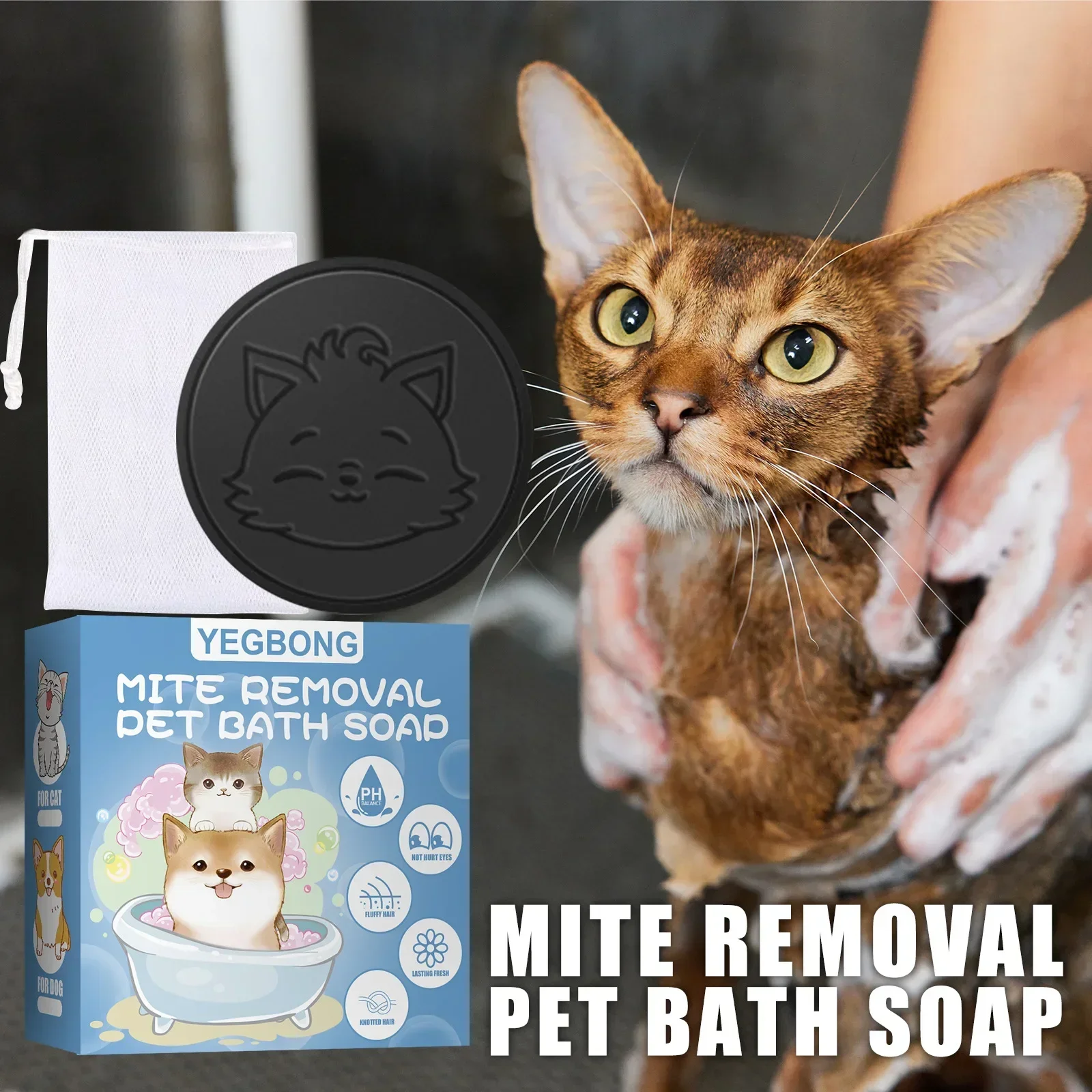 Yegbong Pets Anti Mite Soap Body Deodorant Cleaning Skin Itching Odor Control Mite Flea Treatment Hair Smoothing Dog Mite Cleaning Soap 100g